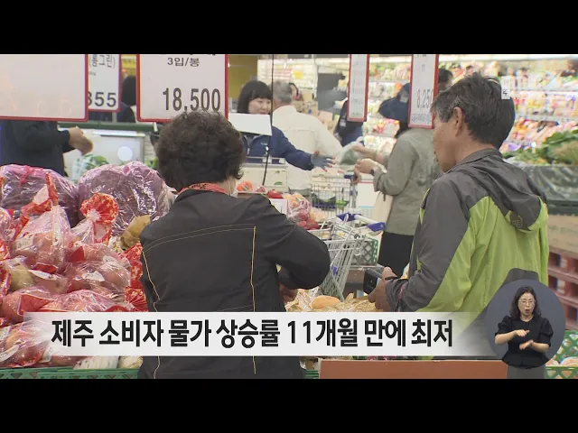 제주지역 소비자물가 상승률이 11개월 만에 최저치를 기록했습니다. 통계청 제주사무소에 따르면 지난달 제주지역 소비자물가지수는 113.73으로 한 달 전보다 2% 올랐는데, 지난해 7월 이후 11개월 만에 가장 낮은 상승률을 보였습니다. 구입 빈도가 높고 지출 비중이 높아 가격 변동을 민감하게 느끼는 생활물가지수도 2.3...