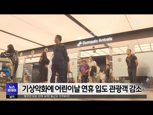 어린이날 기상 악화로 제주를 찾은 관광객이 전망치를 크게 밑돌았습니다. 제주도관광협회에 따르면 어린이날 연휴인 지난 3일부터 사흘 동안 제주를 찾은 잠정 관광객은 12만 5천700여 명으로 협회가 전망했던 13만 2천명보다 4.7% 줄었습니다. 특히, 항공기 결항 등이 잇따랐던 지난 5일 어린이날에는 17.6%가 적은 2만 9...