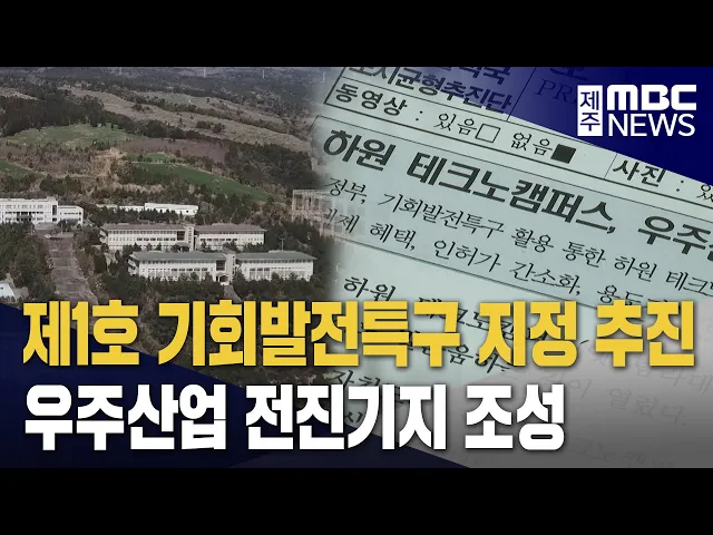 ◀ 앵 커 ▶ 제주도가 옛 탐라대 부지에 민간 우주산업 단지 조성을 추진하고 있는데요. 규제 특례와 세제 감면 등 각종 혜택이 제공되는 제1호 기회발전특구 지정에 나섰습니다. 박주연 기자가 보도합니다. ◀ 리포트 ▶ 제주 우주산업 전진기지로 추진 중인 옛 탐라대학교 부지. 한화시스템과 페리지에어로스페이스 등이 들어...