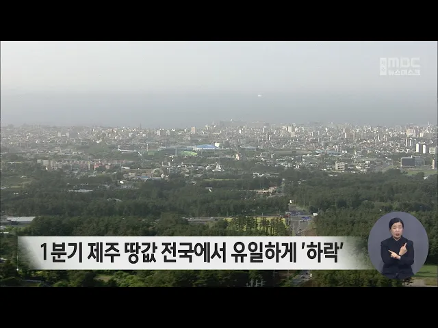 올해 1분기 제주지역 땅값이 전국에서 유일하게 떨어진 것으로 나타났습니다. 국토교통부와 한국부동산원에 따르면 올해 1분기 제주지역 지가변동률은 -0.08%로 전국 17개 시.도 중에서 유일하게 하락했습니다. 전국 지가 변동률은 0.43%로지난해 1분기보다 0.48%포인트 증가했습니다. 한편, 제주지역 지가변동률은 지난 한...