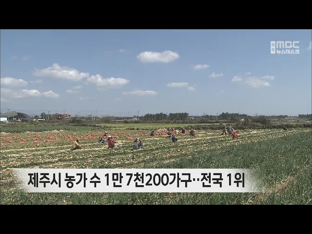 제주시 지역의 농가 수가 전국 시군구 가운데 가장 많은 것으로 집계됐습니다. 통계청에 따르면 지난해 기준 제주시 농가 수는 만 7천200가구로 전국 시구군 가운데 1위를 기록했습니다. 제주시는 1년 새 100가구가 늘어난 반면 기존 1위였던 충북 충주시는 천500가구가 줄면서 순위가 바뀌었습니다. 서귀포시 농가 수는 만...