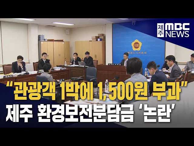 ◀ 앵 커 ▶ 제주도 관광객에게 부과하는 환경보전분담금 제도 도입을 둘러싸고 관광업계가 반발하는 등 논란이 일고 있는데요. 제주도의회 업무보고에서도 환경보전분담금이 쟁점이 됐습니다. 박주연 기자가 보도합니다. ◀ 리포트 ▶ 제주를 찾는 관광객이 늘면서 급증한 생활폐기물과 하수 처리 비용. [리니어 CG ] [지난 20...