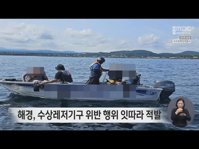 불법으로 수상 레저기구를 운항한 업체가 해경 특별단속에 잇따라 적발됐습니다. 서귀포해양경찰서는 어제(17일) 서귀포시 남원읍 신흥포구 남동쪽 1km 해상에서 등록하지 않은 동력수상레저기구를 운항한 40대를 적발했습니다. 16일에는 서귀포시 대정읍 가파도 남쪽 6백 미터 해상에서 면허정지 상태에서 수상레저기구를 ...