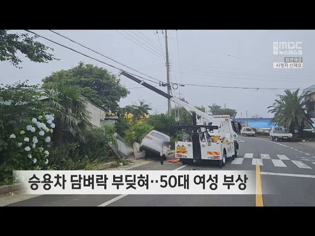 오늘 오전 10시 10분쯤 제주시 한경면 청수리의 한 도로를 달리던 승용차가 건물 담벼락을 들이받는 사고가 발생했습니다. 이 사고로 운전을 하던 50대 여성이 다쳐 인근 병원으로 이송됐으며, 경찰은 정확한 사고 경위를 조사하고 있습니다.