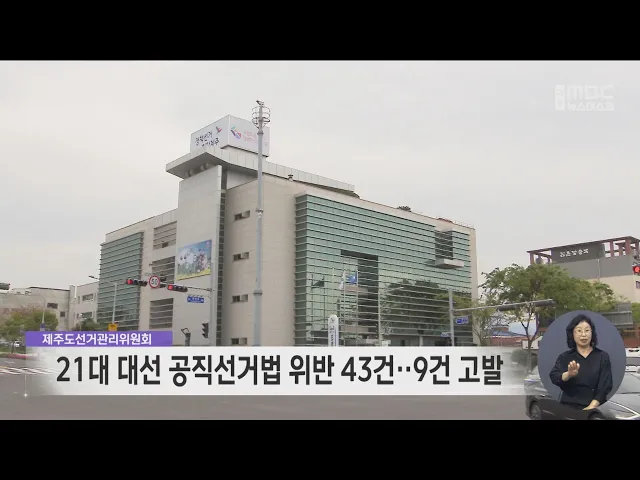 제주도 선거관리위원회가 제21대 대통령선거와 관련해 공직선거법 위반 혐의로 43건을 조치했습니다. 지난 20대 대선 당시 12건에 비해 세 배 이상 늘어났는데 유형별로는 투표지 촬영이 19건으로 가장 많았고 벽보 훼손이 11건 이중투표 관련이 6건 등이었습니다. 선관위는 이 가운데 이중투표 5건과 투표소 소란 2건 등 9...