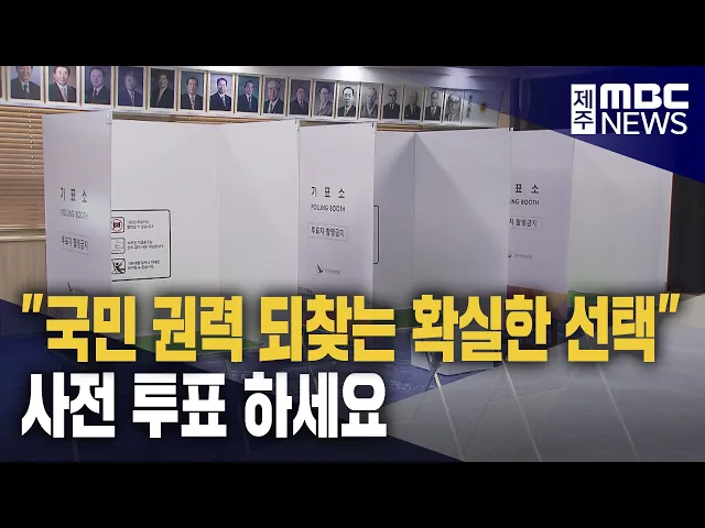 ◀ 앵 커 ▶ 제21대 대통령선거가 이제 일주일도 남지 않았는데요. 사전투표가 내일부터 이틀 동안 진행됩니다. 각 정당에서도 사전투표 참여를 호소하며 지지층 결집에 나섰습니다. 김항섭 기자입니다. ◀ 리포트 ▶ 제주도의회 대회의실에 마련된 사전투표소입니다. 투표용지 프린터와 기표소, 투표함까지 투표 준비가 모두 ...