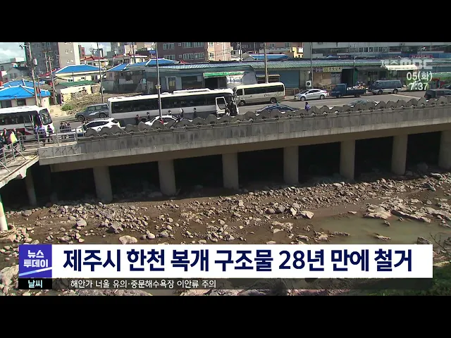 태풍과 집중 호우에 침수 피해가 이어졌던 제주시 한천 복개 구조물이 28년 만에 철거됩니다. 제주시는 올해 하반기에 사업비 400억 원을 투입해 제주시 용담1동 344미터 길이의 한천 복개 구조물을 철거한다고 밝혔습니다 한천 복개 구조물은 지난 2007년 태풍 나리와 2016년 태풍 차바 내습 당시 하천이 범람과 침수 피...