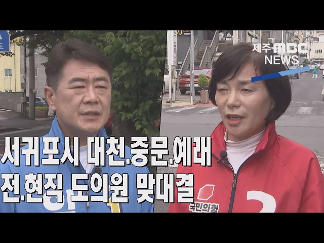 ◀ANC▶ 도의원 선거 격전지 후보들을 소개하고 공약을 살펴보는 기획뉴스 시간입니다. 오늘은 일곱 번째로 전·현직 도의원이 맞대결을 펼치고 있는 서귀포시 대천?중문?예래 선거구입니다. 김항섭 기자입니다. ◀END▶ ◀VCR▶ (LINER CG) 제주의 대표적인 관광지인 중문 관광단지가 포함된 서귀포시 대천?중문?예...