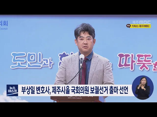 보궐선거 실시가 확실시된 제주시 을 선거구 국회의원 보궐선거에 부상일 변호사가 출마를 선언했습니다. 부상일 변호사는 지난 21대 총선에서 낙마한 경험이 있었지만 제주도와 제주도민을 위해 제대로 일해 보겠다는 의지를 굽힌 적이 없다며, 국민의힘 공천을 받지 못할 경우 무소속으로 출마하겠다고 밝혔습니다.