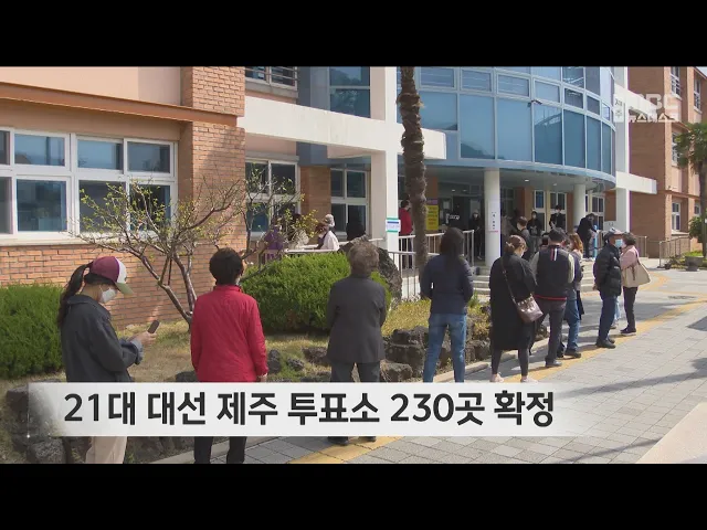 제21대 대통령선거가 열흘 앞으로 다가온 가운데 제주지역 투표소가 확정됐습니다. 제주도 선거관리위원회는 제주시 142곳과 서귀포시 88곳 등 21대 대선 투표소 230곳을 확정했습니다. 투표소 위치는 선거인명부 열람시스템을 이용하거나 중앙선관위 홈페이지의 '투표소 찾기' 연결 서비스를 통해 확인할 수 있습니다. 이...