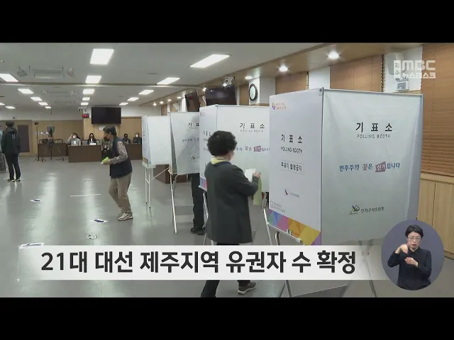 21대 대선 제주지역 유권자 수가 확정됐습니다. 제주도선거관리위원회에 따르면 선거인명부에 오른 제주지역 유권자는 56만 3천196명으로 지난 20대 대선보다 735명 늘었습니다. 선거인은 선거인명부 열람시스템과 중앙선관위 누리집의 투표소 찾기 연결 서비스를 통해 투표소 위치를 확인할 수 있습니다.