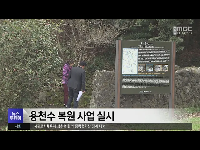 용천수 복원 사업이 실시됩니다. 제주시는 이달 중으로 읍면동 수요 조사를 통해 용천수 1곳을 선정하고, 사업비 5천만 원을 투입해 복원 사업을 추진합니다. 이번 사업에서는 용천수 바닥 정비와 울타리 설치, 소규모 정원 조성 등이 이뤄지게 됩니다.