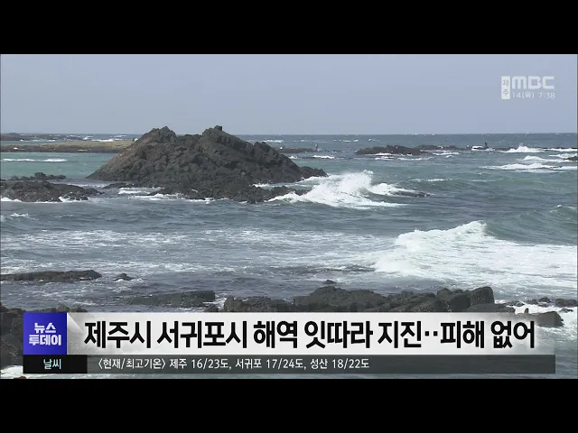 제주시 서귀포시 해역 잇따라 지진..피해 없어