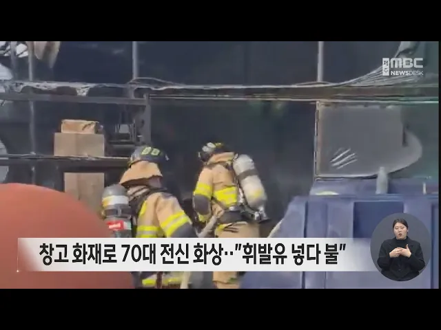 창고 화재로 70대 전신 화상‥"휘발유 넣다 불"