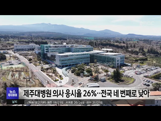 제주대학교병원의 의사 모집에 대한응시율이 저조한 것으로 나타났습니다.더불어민주당 백승아 의원이전국 국립대 병원의 3년 간 의사직 모집 현황 자료를 분석한 결과제주대병원의 경우 모집 인원 대비 응시율은 26.5%로 전국 국립대 병원 10곳 가운데네번째로 낮았습니다.현재 제주대병원의 의사는 185명으로정원 337명 ...
