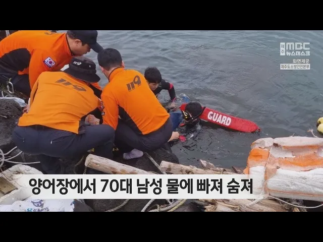 도내 한 양어장에서 70대 남성이 물에 빠져 숨지는 사고가 발생했습니다. 오늘(26일) 오후 1시 반쯤 서귀포시 성산읍의 한 양어장에서 70대 남성이 물에 빠져 119 구조대에 의해 구조돼 의식이 없는 상태로 제주시내 병원으로 이송됐지만 결국 숨졌습니다. 소방당국은 신고자 등을 상대로 정확한 사고경위를 조사하고 있습...