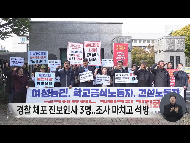 국가보안법 위반 혐의로 진보인사 3명이 경찰에 체포된 것과 관련해 제주지역 시민단체가 이들을 당장 석방할 것을 촉구했습니다. 공안탄압저지 민주수호 제주대책위는제주지방검찰청 앞에서 기자회견을 열고정권위기 탈출용으로 인권탄압과 공안탑압을 저지르는 윤석열 정권의 퇴진과경찰에 체포된 진보인사 3명의 석방을 ...