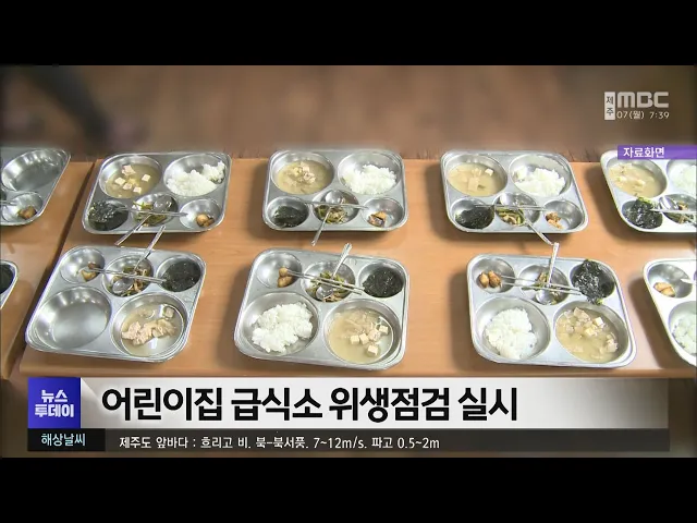 도내 어린이집 급식소에 대한위생점검이 이뤄집니다. 제주도는 최근 전국적으로어린이집과 유치원 등에서식중독 의심신고가 증가함에 따라오늘(7일)부터 오는 23일까지어린이집 집단급식소 93곳을 대상으로점검을 벌인다고 밝혔습니다. 이번 점검에서는 조리종사자 위생관리와 식재료 보관기준 준수 여부 등을 확인하게 되...