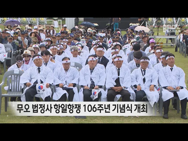 무오 법정사 항일항쟁 106주년 기념식이 서귀포시 중문중학교에서 열렸습니다. 오영훈 제주도지사는 기념식에서 재주 최초이자 최대 규모의 무장 항일운동인 무오법정사 항일항쟁을 후대에 고스란히 전할 수 있도록 그 가치를 조명하는 데 최선을 다하겠다고 말했습니다. 이번 기념식에서는 인공지능 기술을 활용해 독립유...