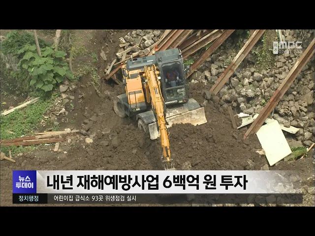 제주도가 내년 재해예방사업에6백억 원을 투자합니다. 도는 내년에 371억 원을 들여 12개 지구에 자연재해위험개선 사업을 추진하고,110억 원을 투입해 3개 지구에풍수해 생활권 종합 정비를실시할 계획입니다. 특히 신규 사업으로 서귀포시 대정읍 상하모 지구 자연재해위험개선지구 정비사업을 비롯해제주시 조천읍 신촌...