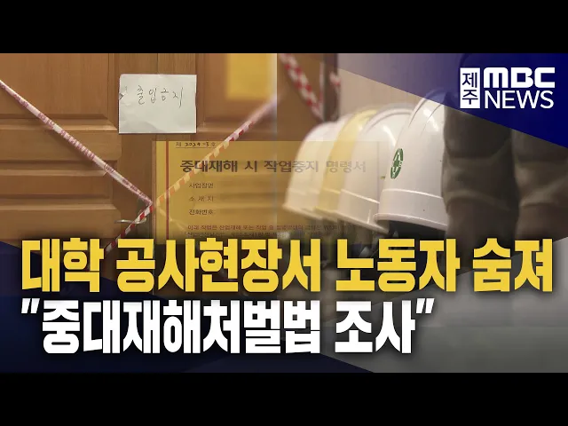 ◀ 앵 커 ▶ 지난달 제주의 한 대학교 공사현장에서 철거 작업을 하던 노동자가 사고로 숨진 사실이 뒤늦게 확인됐습니다. 고용노동부가 중대재해처벌법을 위반했는지 조사에 나섰습니다. 김항섭 기자의 단독 보도입니다. ◀ 리포트 ▶ 제주의 한 대학교 건물 복도에 책상과 의자 등이 어지럽게 쌓여있습니다. 회의실 입구에는 ...
