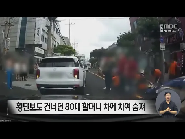 횡단보도를 건너던 80대 할머니가 승용차에 치여 숨졌습니다. 오늘(10일) 오후 2시 50분쯤 제주시 조천읍의 한 도로에서 횡단보도를 건너던 80대 할머니가 승용차에 치여 근처 병원으로 옮겨졌지만 결국 숨졌습니다. 경찰은 신호등이 없는 횡단보도에서 운전자가 피해자를 보지 못한 것으로 보고 정확한 사고 경위를 조사하...