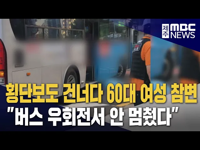 ◀ 앵 커 ▶ 제주의 한 교차로에서 횡단보도를 건너던 여성이 우회전하는 시내버스에 치여 숨지는 사고가 발생했습니다. 이런 사고를 막기 위해 우회전 일단 멈춤 규정이 2년 전에 강화됐는데, 사고가 끊이질 않고 있습니다. 김항섭 기자입니다. ◀ 리포트 ▶ 횡단보도와 신호등이 있는 제주의 한 교차로. 한 여성이 보행신호에...