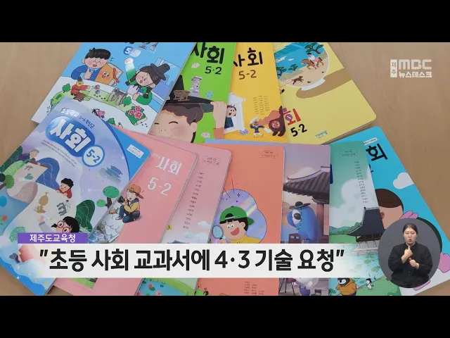 제주도교육청이 제주 4.3을초등학교 사회 교과서에 기술해 줄 것을출판사에 요청했습니다. 교육청은 2022 개정 교육과정초등 사회 교과서 주요 출판사를 방문해,제주 4.3의 핵심적 전개 과정 등을 서술한제주 4.3 집필 시안을 전달하고교과서에 제주 4.3이 기술될 수 있도록 요청했다고 밝혔습니다. 현재 교과서인 2015개정...