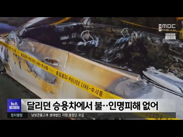 운행 중이던 차에서 불이 나인명 피해는 없었지만 차가 모두 불에 탔습니다. 어제(2일) 저녁 8시 반쯤제주시 조천읍 남조로에서 달리던 승용차에 불이 나 차량을 전부 태우고 20여 분 만에 진화됐습니다. 불이 나자 운전자가 차를 세우고 피해 다친 사람은 없었으며, 소방당국 달리던 중 차량 앞 쪽에서 연기가 난 뒤 불길...