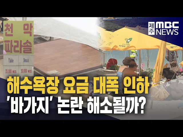 ◀ 앵 커 ▶ 여름 관광 성수기를 맞아 도내 해수욕장의 바가지 요금이 전국적인 논란이 되고 있는데요. 해수욕장들이 일제히 가격 인하에 나섰습니다. 제주관광에 대한 부정적인 인식이 개선될 수 있을지 주목됩니다. 김항섭 기자입니다. ◀ 리포트 ▶ 최근까지 평상 대여 요금으로 6만 원을 받던 한 해수욕장. 공유수면 ...