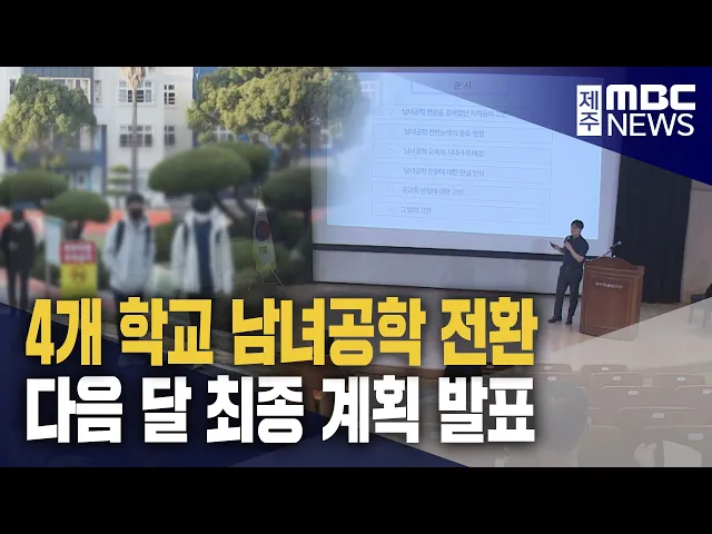 ◀ 앵 커 ▶ 제주시 동지역의 4개 중학교를 남녀 공학으로 바꾸는 최종 계획이 다음 달 말에 나올 예정인데요. 구체적인 지원 방안을 발표하고 학부모와 교직원들의 의견을 듣는 설명회가 열렸습니다. 김항섭 기자입니다. ◀ 리포트 ▶ 학생들의 선택권 확대와 통학 거리 단축 등을 위해 추진되는 교육청의 중학교 남녀공학 전...