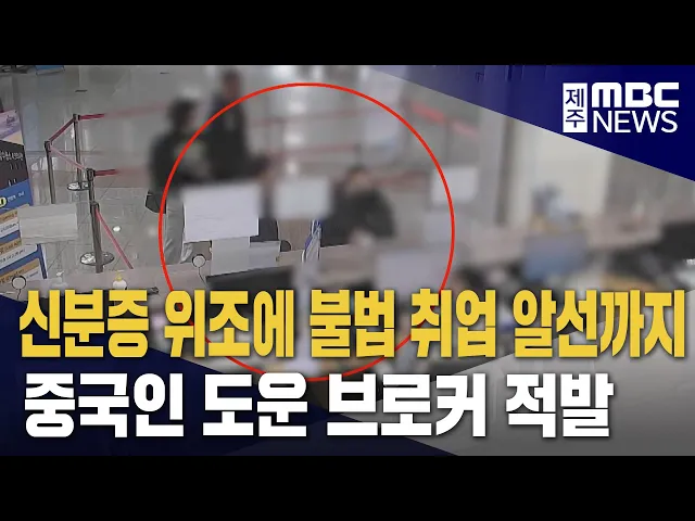 ◀ 앵 커 ▶ 무사증 제도로 비자없이 제주에 입국한 뒤 몰래 다른 지역으로 빠져나가는 외국인들이 종종 단속에 적발되는데요. 이들에게 돈을 받고 위조 신분등을 만들어주거나 불법 취업을 시켜준 브로커와 고용주들이 무더기로 적발됐습니다. 김항섭 기자입니다. ◀ 리포트 ▶ 이른 아침 제주항 여객터미널 대합실. 흰색 점...