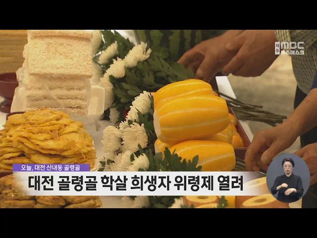제주 4.3 희생자가 포함된 대전 골령골 학살 사건에 대한 희생자 위령제가 오늘(27일) 대전 골령골에서 봉행됐습니다. 골령골 학살 사건은 한국전쟁 당시 대전형무소에 수감됐던 수형인 7천 여 명이 총살 당한 사건으로 4.3 당시 군사재판을 받고 수감된 제주도민 300여 명이 포함된 것으로 추정됩니다. 한편, 지난해 골령...