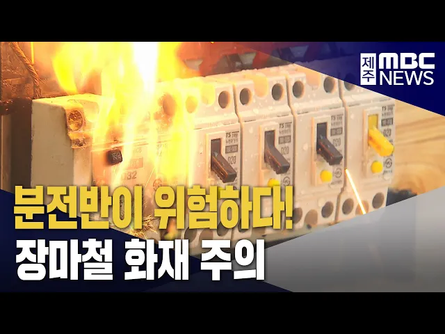 ◀ 앵 커 ▶ 장마철같이 비가 잦은 시기에는 건물에 전기를 분배하고 차단하는 분전반에 물이 들어갈 경우 화재가 발생하기 쉬운데요. 실제 어떤 위험이 있는지 김항섭 기자가 실험 현장에 다녀왔습니다. 지난해 여름 서귀포시 대정읍의 한 마트에서 불이 나 건물 일부가 심하게 그을렸습니다. 비가 오는 날 건물 분전반 틈...