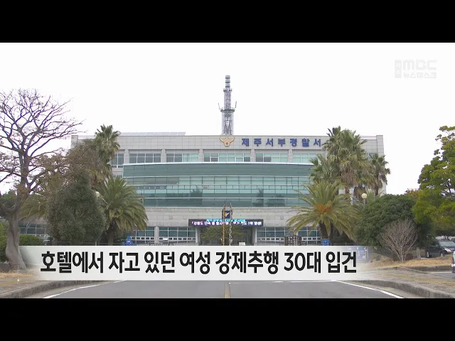 호텔 객실에서 자던 여성을강제추행한 30대 관광객이경찰에 붙잡혔습니다. 제주서부경찰서는어제 새벽 2시쯤 제주시내의 한 호텔객실에 들어가 자고 있던 여성을강제추행한 30대 남성을 입건했습니다.경찰 조사결과 이 남성은 피해 여성의 일행이 통화하러 나간 사이 객실의 문이 열린 것을 보고 들어가범행을 저지른 것으...