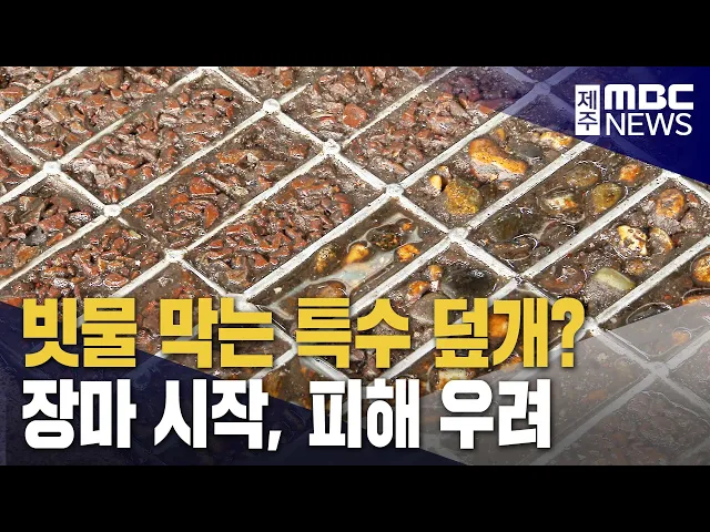 ◀ 앵 커 ▶제주시가 도심 일부분에 설치한빗물받이 특수덮개가 오히려 비피해를키울수 있다는 보도를 얼마전 전해드렸는데요. 장마기 시작됐지만 여전히 교체가이뤄지지 않아 피해가 현실화 될 우려가높아지고 있습니다.김항섭 기자입니다. ◀ 리포트 ▶ 장마 시작과 함께 장대비가 쏟아지는제주시내의 한 골목. 한 남성이 빗...