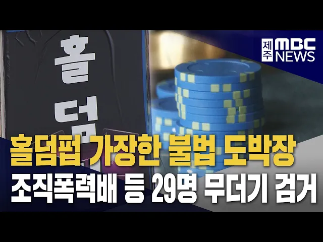 ◀ 앵 커 ▶ 합법적으로 카드 게임을 할 수 있는 홀덤펍. 요즘 곳곳에서 볼 수 있는데요. 이런 합법적인 업장으로 위장해 불법 도박장을 운영한 조직폭력배와 손님 등이 무더기로 경찰에 붙잡혔습니다. 김항섭 기자입니다. ◀ 리포트 ▶ 유동인구가 많은 곳에 위치한 제주시내의 한 빌딩. 건물 5층에 술을 마시면서 카드 게임...
