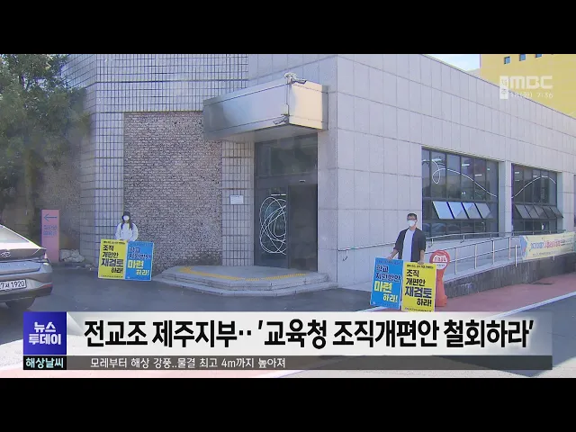 전교조 제주지부는 성명을 내고제주도교육청은 최근 확정한 조직개편안을철회하라고 주장했습니다. 이들은 제주도교육청이조직개편과 관련해 충분한 의견수렴 과정을 거치치 않았다며,정무부교육감 신설과 조직개편이 필요한지에 대한 논의과정이생략됐다고 강조했습니다. 또 지금 추진되고 있는조직개편은 졸속적이며 학교...