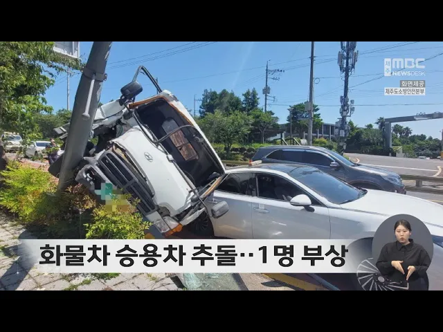 목재를 싣고 달리던 화물차가승용차를 들이받는 사고가 발생했습니다. 오늘 오전 10시 40분쯤서귀포시 동홍동의 한 교차로에서2.5톤 화물차가 가로등과신호 대기 중인 승용차를잇따라 들이받으면서 승용차 운전자가 다쳤습니다. 경찰은 브레이크가 말을 듣지 않았다는화물차 운전자의 진술을 바탕으로정확한 사고 경위를 조...