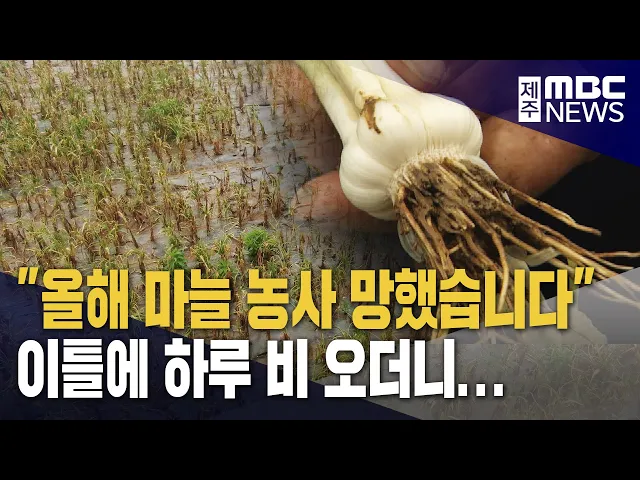 ◀ 앵 커 ▶잦은 비로 마늘이 너무 많이 자라면마늘쪽이 여러 개로 갈라지는이른바 '벌마늘' 피해가 발생하게 되는데요. 서귀포시 대정읍 지역을 중심으로벌마늘 현상이 대량으로 나타나면서농민들이 대책 마련을 요구하고 나섰습니다. 김항섭 기자입니다. ◀ 리포트 ▶수확을 앞둔 서귀포시 대정읍의 한 마늘밭. 성인 무릎 높...