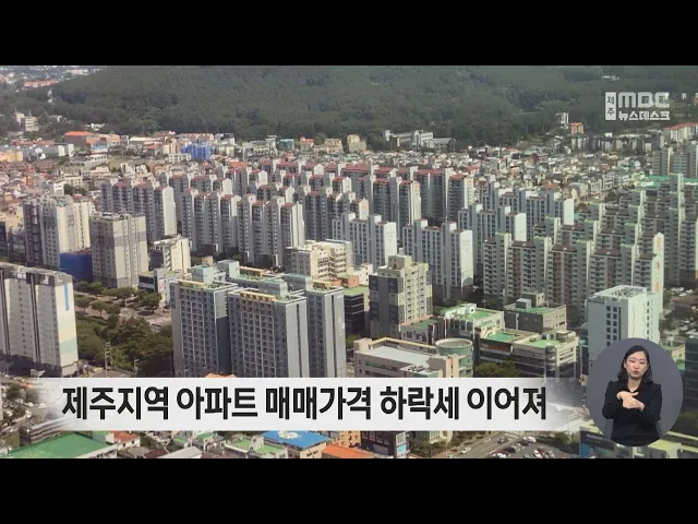 제주지역 아파트 매매가격 하락세가계속되고 있습니다. 한국부동산원에 따르면4월 넷째주 제주지역 아파트 매매가격은일주 전보다 0.05% 떨어져 부산에 이어 전국에서 두 번째로큰 하락폭을 보였습니다. 제주시는 연동과 노형동 위주로, 서귀포시는 강정동과 중문동의 중소형 규모의 아파트 매매가가 하락했습니다.제주지...