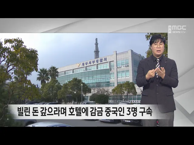 빌린 돈을 갚지 않는다며 같은 중국인을 감금한 중국인들이경찰에 붙잡혔습니다. 제주서부경찰서는 지난 14일 제주시 노형동의 한 호텔 객실에서빌린 돈 천만 원을 갚지 않는다며20대 중국인 남성을 20시간 넘게 감금하고 폭행한 혐의로 40대 중국인 3명을 구속했습니다.경찰 조사결과 이들은 피해자에게 차용증을 쓰게 하...