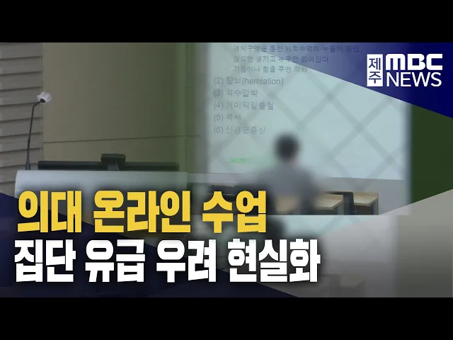 ◀ 앵 커 ▶제주대 의대생들이집단으로 휴학계를 내고수업을 거부하면서학교 측은 비대면 수업까지 마련했는데요. 총선 때문에 좀처럼 의-정 협의가이러지지 않으면서 수업 일수 부족으로 인한집단 유급 우려가 점점 커지고 있습니다.김항섭 기자입니다. ◀ 리포트 ▶지난 달 18일 개강한 제주대학교 의과대학. 강의실에는 학...
