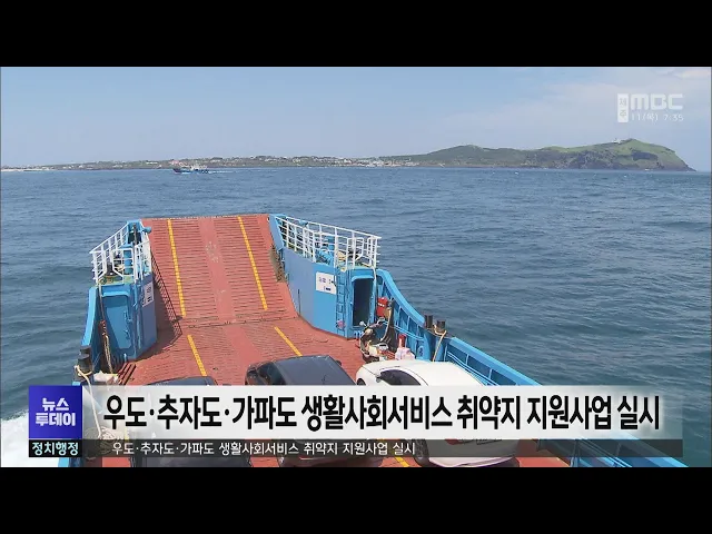 제주도가 오는 7월부터제주시 우도면과 추자면,서귀포시 가파도에생활사회서비스 취약지지원사업을 실시합니다. 지역사회서비스 사각지대에 놓인지역주민을 대상으로 하는이번 지원사업에서는성인 인구가 많은 도서지역 특성을 고려해성인건강코칭 서비스와 어르신기능향상 서비스사업이진행될 예정입니다.