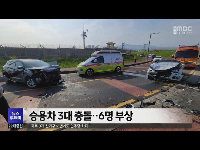 어제(10일) 아침 8시 50분쯤제주시 도두1동의 한 도로에서승용차 3대가 충돌하는 사고가 발생했습니다. 이 사고로 승용차 운전자 20대 남성 등6명이 다쳐 인근 병원으로 옮겨졌습니다. 경찰은 도리초등학교방면으로 가고 있던 차량이 중앙선을 넘어 마주오던 차량 2대와 충돌한 것으로 보고과속 여부 등 정확한 사고 경위를...