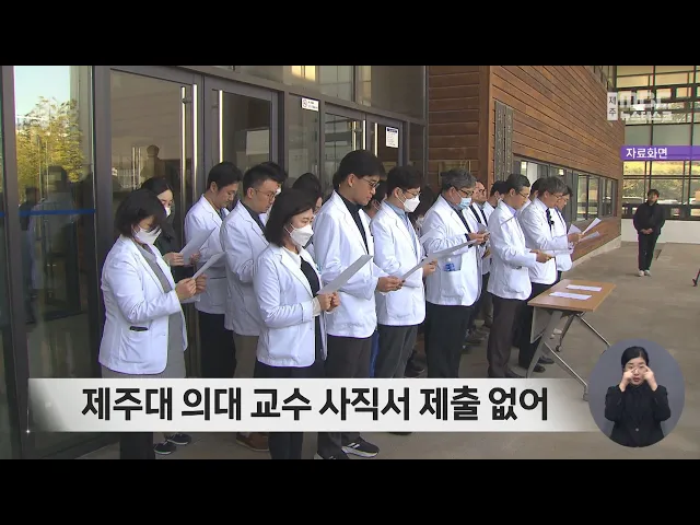 전국적인 의대 교수 사직서 제출이 시작된 가운데 제주에서는 아직까지 별다른 움직임이 나타나지 않고 있습니다. 제주대 의과대학에 따르면 소속 교수 153명 가운데 사직서를 낸 교수는 없는 것으로 확인됐습니다. 제주대 의대 교수협의회는 지난 주 사직에 대한 설문을 마무리하고 총회를 진행했지만, 아직 결정을 내...