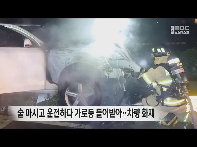 술 마시고 운전하다 가로등 들이받아‥차량 화재