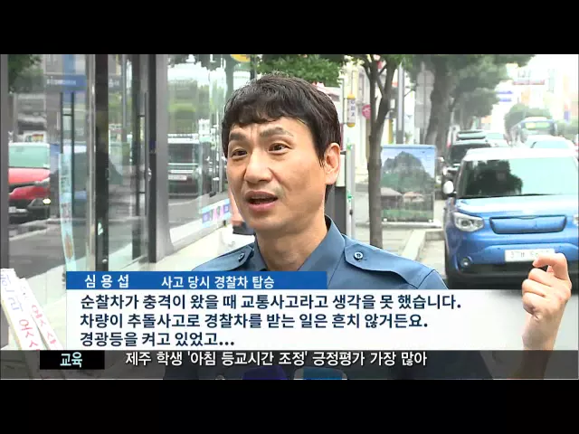 ◀ANC▶ 대낮에 만취한 30대 운전자가 몰던 트럭이 경찰차를 들이받는 황당한 사고가 발생했습니다. 혈중 알코올 농도가 무려 면허취소 기준치의 3배인 0.29% 였습니다. 김항섭 기자가 취재했습니다. ◀END▶ ◀VCR▶ 횡단보도 앞에 경찰차가 멈춰섭니다. 뒤따라오던 트럭이 속도를 줄이지 않고 그대로 들이받습니다. 경...