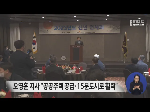 오영훈 제주도지사가 공공주택 공급과 15분 도시 실현을 통해 지역경제에 활력을 불어넣겠다고 밝혔습니다. 오영훈 지사는 대한건설협회 제주도지회 신년인사회에서 오는 2026년까지 공공주택 7천호를 건설하고, 15분 도시 조성사업으로 건설 경기 진작에도 효과를 낼 수 있도록 정책 방향을 세우겠다고 밝혔습니다.