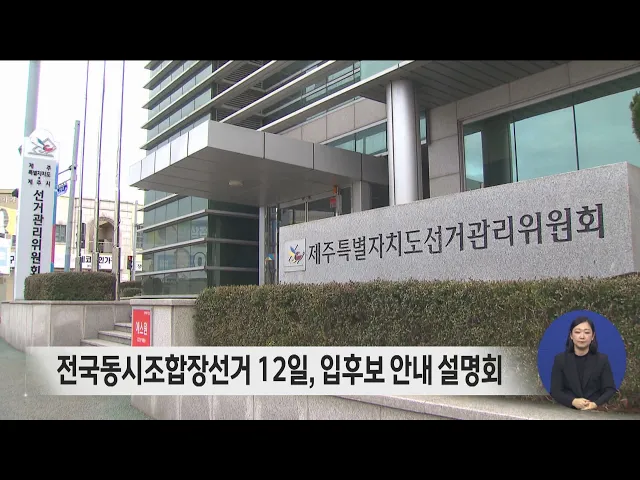 제주도선거관리위원회는 내년 3월 8일 실시되는 제3회 전국동시조합장 선거와 관련해 오는 12일 입후보 안내 설명회를 개최합니다. 이번 설명회에서는 조합장 선거에 출마하려는 입후보 예정자 등을 대상으로 피선거권에 관한 사항과 후보자 등록서류 작성방법, 선거운동방법 등에 대한 안내가 이뤄집니다.